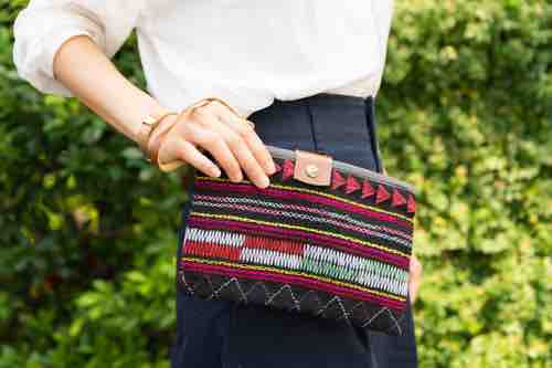 軽くて荷物がたくさん入る、ショルダーの三角柄が個性的なバッグ「トゥイ」を旅行や普段用に使ってくださいね!